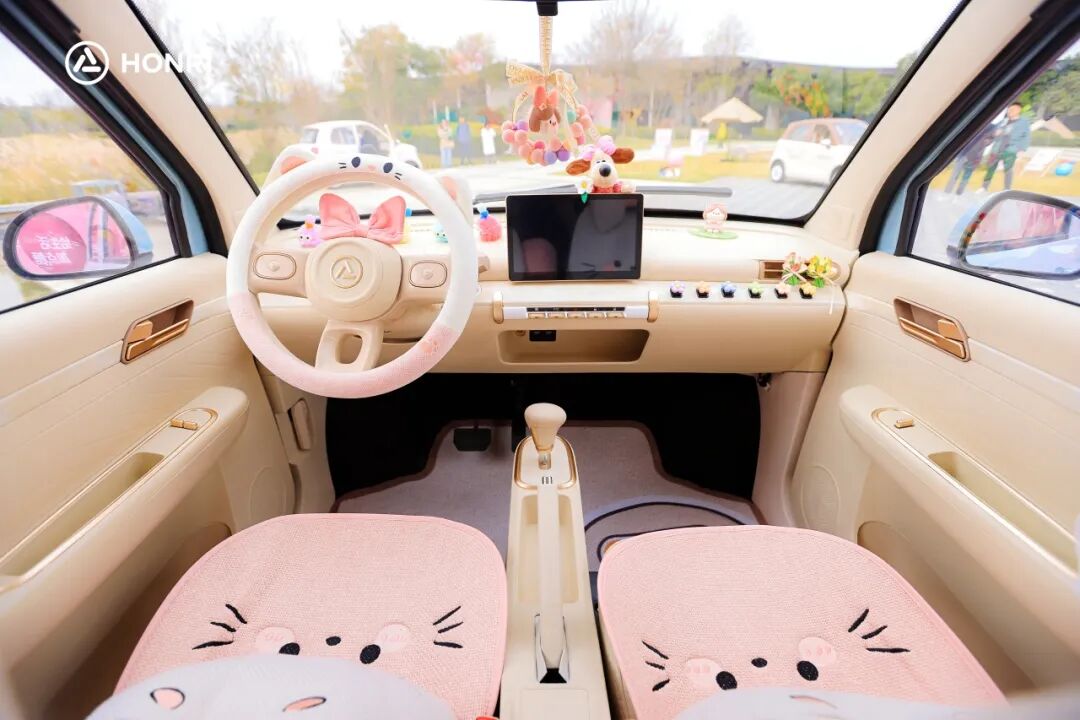 安全不含糊,外观和内饰方面同样极致用心。鸿日泡泡糖,采用行业首创大角度溜背造型,专属原创设计不撞款,不仅颜值吸睛,更让风阻降低 20%,能耗更省、行驶更稳,好看又实用。步入泡泡糖【暖甜】头等舱,处处皆巧思。行业首创0异味·0苯健康用材,专为呵护家人健康出行而设计;七层云感沙发,让座椅会呼吸,久坐更透气、更舒适;10.1英寸高清全视角悬浮式大屏,搭配四季主题UI界面,随心而变,时尚个性。